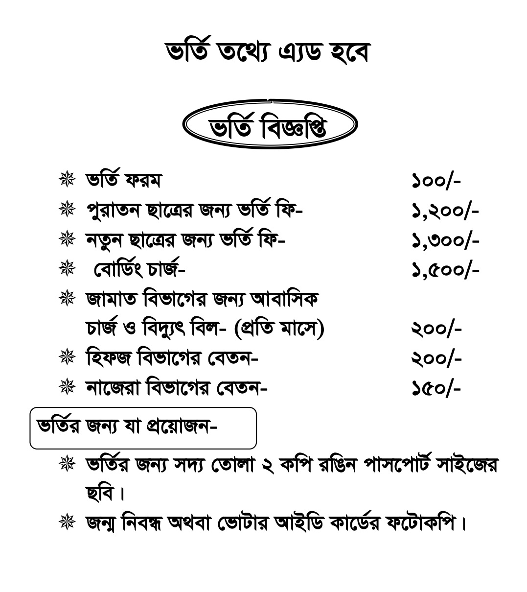 ভর্তি শুরু 7 এপ্রিল 2025 ইং রোজ সোমবার হতে, ক্লাস শুরু 16 এপ্রিল বুধবার ইনশাআল্লাহ